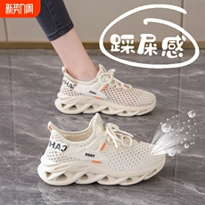 老北京布鞋女单鞋一脚蹬时尚休闲鞋镂空网面德训鞋浅口平底阿甘鞋