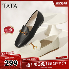 Tata他她秋季英伦乐福鞋平底休闲单鞋女软底小皮鞋女FLC22AM5奥莱