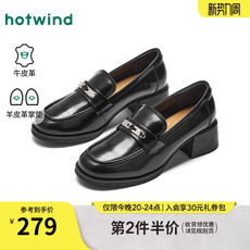 热风粗跟乐福鞋女鞋2026年春季新款单鞋配裙子小皮鞋H02W26119