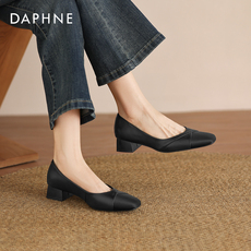 达芙妮爆款软面时尚女鞋2023年春季百搭粗跟浅口法式网红高跟单鞋