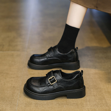 小皮鞋女英伦风2025年春秋新款百搭厚底单鞋黑色珍珠软底乐福鞋