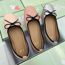 甜美风蝴蝶结方头浅口单鞋简约平底日常百搭耐磨轻便防滑大码女鞋