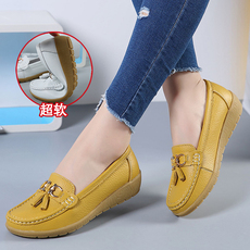 踩屎感真皮单鞋女2026秋季新款软底乐福鞋34码豆豆小皮鞋子勃肯鞋