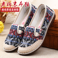 春秋款透气吸汗舒适复古亚麻布鞋女单鞋老北京妈妈鞋一脚蹬懒人鞋