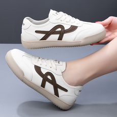 真皮小白鞋女ins爆款网红板鞋2025新款春秋圆头系带平底休闲单鞋