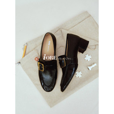 IORE理想矿石 克制中蕴含力量 摔皱油蜡牛皮金属扣粗跟中跟单鞋