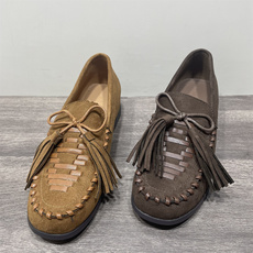 断码处理复古编织流苏乐福鞋女休闲懒人一脚蹬鞋子平底内增高单鞋