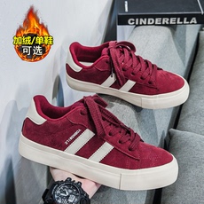 酒红色休闲板鞋男2025冬季新款学生帆布鞋男加绒百搭运动休闲潮鞋