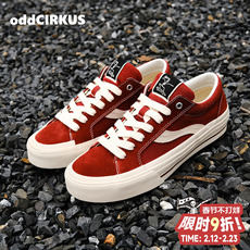 顽刻官方酒红美拉德春季校园风W系列翻毛皮帆布男女国潮滑板鞋