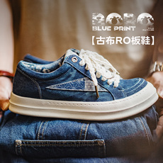 秋冬复古洗水蓝牛仔布板鞋高街美式休闲硫化帆布鞋低帮男女款厚底