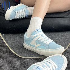 顽刻ollieskate海水蓝春季校园风W系列翻毛皮帆布男女国潮滑板鞋