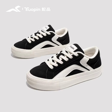 顽刻官方经典黑白春季校园风W系列翻毛皮帆布拼接男女国潮滑板鞋