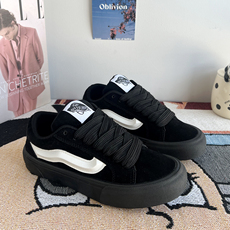 VISION官方 黑胶限定系列翻毛皮帆布鞋街头经典黑运动滑板鞋男女