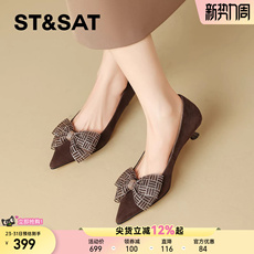 星期六法式蝴蝶结浅口单鞋尖头细跟气质绒面高跟鞋简约百搭通勤鞋