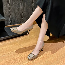 HGK摩登交响 黑色静音高跟鞋女时尚气质法式通勤方扣方头单鞋女鞋