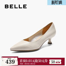 百丽女鞋子细高跟单鞋新款真皮通勤不累脚浅口单鞋BFH01CQ5预