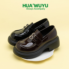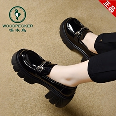 大东厚底乐福鞋女鞋2026新款春秋爆款粗跟金币漆皮小皮鞋