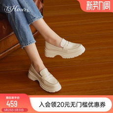 明星同款73hours女鞋奶牛猫2025春新款白色厚底乐福鞋轻便小皮鞋