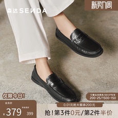 新款休闲皮鞋男真皮韩版潮流商务厚底轻质橡胶发泡底一脚蹬乐福鞋