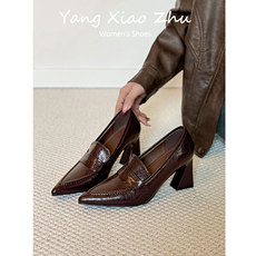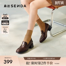 大东乐福鞋女鞋2026春季新款英伦优雅粗跟高跟套脚圆头学院