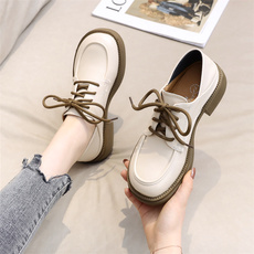 奥康 女鞋春秋复古厚底乐福鞋休闲单鞋女一脚蹬小皮鞋