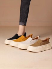 真皮厚底乐福鞋女2025新款春季一脚蹬女鞋百搭小白鞋爆款休闲板鞋