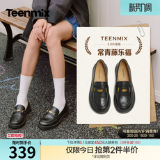 天美意粗跟厚底增高学院英伦乐福鞋小皮鞋女复古单鞋2026春季新款