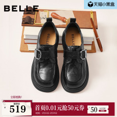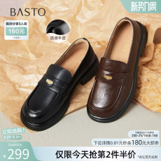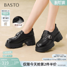 百思图2026春季商场新款牛皮厚底粗跟乐福鞋小皮鞋女单鞋CS583AM6