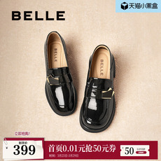 百丽粗高跟乐福鞋女春新款一脚蹬黑色小皮鞋单鞋子D7E1DAA5预