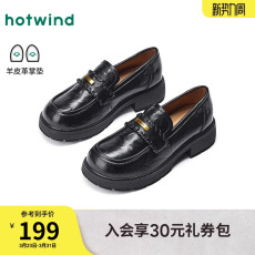热风粗跟乐福鞋女鞋2026年春季新款单鞋配裙子小皮鞋H02W26119
