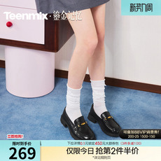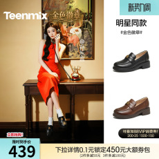 孙乐言同款天美意金色徽章厚底英伦常青藤乐福鞋单鞋女软底小皮鞋