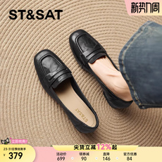 思加图新款英伦风复古乐福鞋厚底增高一脚蹬小皮鞋女鞋子EEZ45CA5