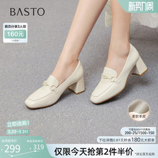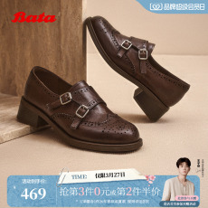 Bata乐福鞋女秋季新款复古英伦风牛皮通勤粗跟单鞋65011CA5