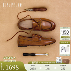真美诗时光回响2026春季新款复古牛津鞋皮鞋进口水洗马皮乐福鞋女