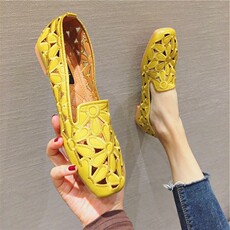 镂空洞洞单鞋女平底肥宽胖脚妈妈鞋中年女士乐福鞋大码瓢鞋豆豆鞋