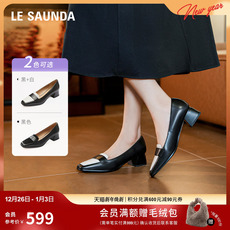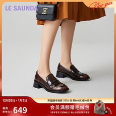 莱尔斯丹2025秋冬新款真皮时尚通勤方头粗跟女乐福单鞋6T46324
