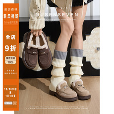 柒步森林翻毛牛皮厚底乐福鞋英伦加绒毛毛棉单鞋子女冬季2025新款