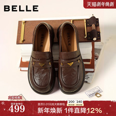 专柜正品百丽2026春款女鞋复古厚底乐福鞋小皮鞋深口单鞋F2M1DAM6