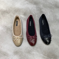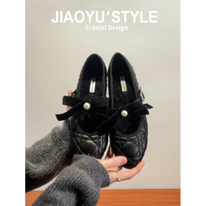 通勤小香风平底加绒浅口单鞋女2025秋冬新款百搭蝴蝶结保暖豆豆鞋