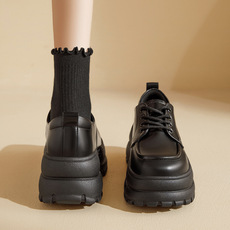 奥古狮登厚底乐福鞋女款2025新款秋季黑色系带英伦小皮鞋加绒单鞋