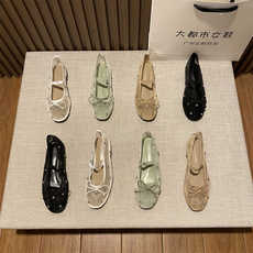 羊皮版!2025年透气网纱蕾丝芭蕾舞蝴蝶结圆头仙女风单鞋女软底