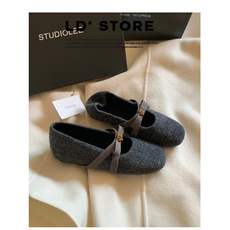 灰色玛丽珍毛毛鞋女冬2025新款韩版呢子单鞋女平底加绒保暖棉鞋子