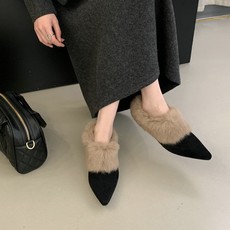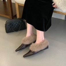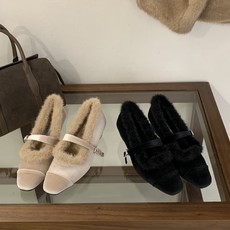 St&Sat/星期六2025新款单鞋复古毛绒玛丽珍鞋平底一脚蹬保暖女鞋