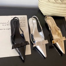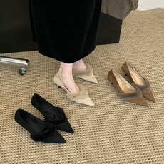 法式春尖头包头凉鞋女坡跟蝴蝶结后绊带单鞋绝美百搭半拖鞋真皮鞋