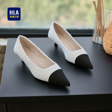 海澜之家女鞋高跟鞋时尚气质尖头细跟通勤工作鞋简约黑色中跟单鞋