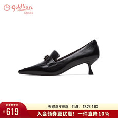 羊皮版~通勤英伦风小皮鞋女金属扣真皮尖头单鞋法式复古风高跟鞋