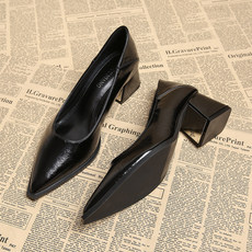 2025秋季新款粗跟浅口一脚蹬气质尖头高跟鞋外穿单鞋通勤日常女鞋