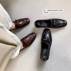 英伦风金属扣一脚蹬乐福鞋女2026春粗跟单鞋复古百搭通勤小皮鞋