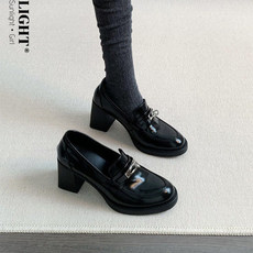 St&Sat/星期六方头学院风粗跟气质单鞋英伦风浅口乐福鞋中跟跟鞋