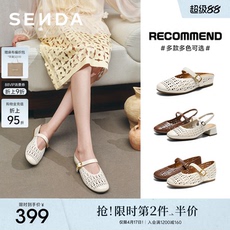 森达羊皮女鞋新款玛丽珍拖鞋镂空半拖穆勒包头凉鞋真皮单鞋皮鞋